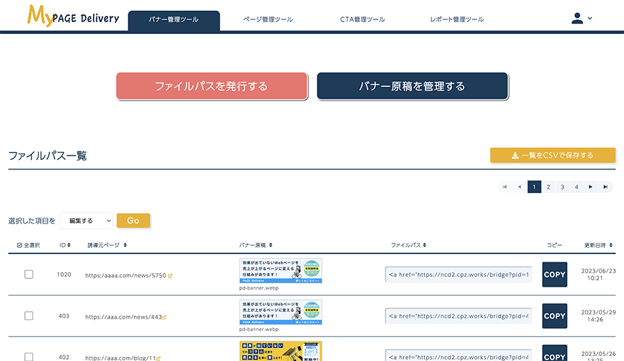 検証結果に合わせて、バナーを追加して多様化を図ったり、バナーを差し替えて最適化を図ったりすることができます。 -
